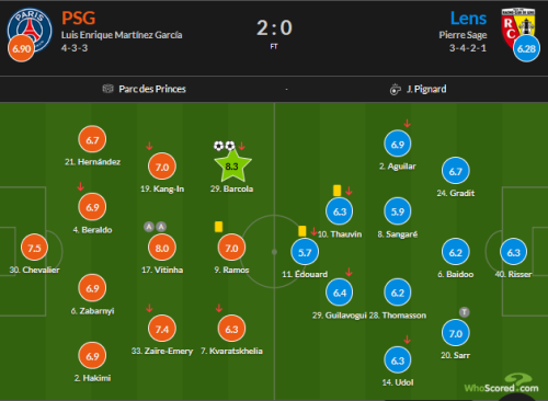Рейтинги игроков по версии WhoScored в матче ПСЖ – Ланс (2:0):
