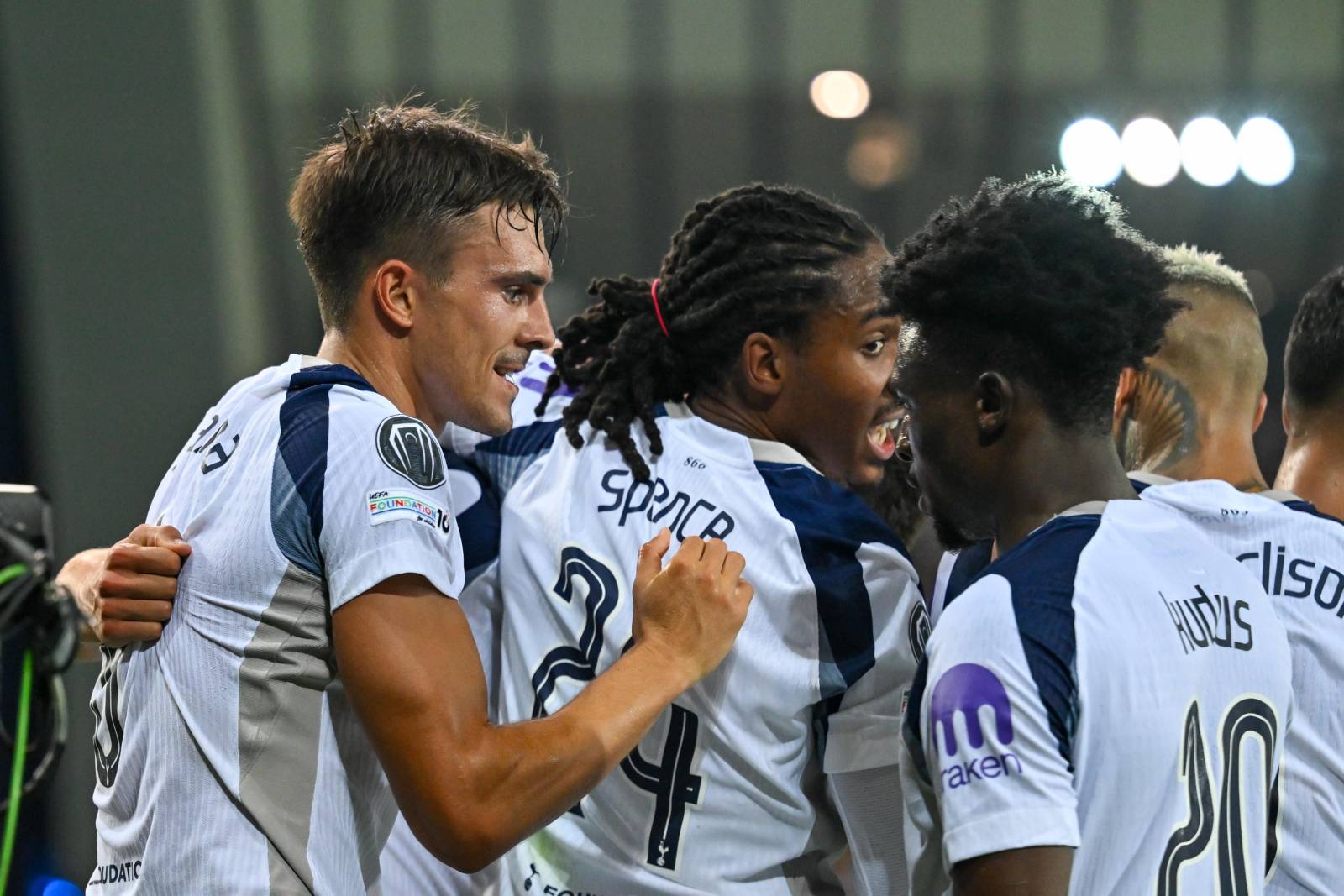 Счёт в матче был открыт на 26-й минуте - неожиданный автогол забил защитник пражской "Славии" Давид Зима, срезав мяч в собственные ворота после подачи в штрафную. Во втором тайме, на 50-й минуте, полузащитник "шпор" Мохаммед Кудус удвоил преимущество своей команды, холоднокровно реализовав 11-метровый удар. Ближе к финальному свистку, на 80-й минуте, всё тот же пенальти уже пробивал Хави Симонс - он без труда отправил мяч в сетку, доведя преимущество "Тоттенхэма" до разгромного.