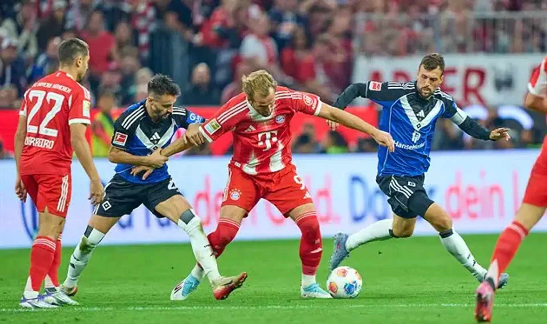 Первый гол был забит на 34-й минуте, когда полузащитник Фабиу Виейра точно реализовал пенальти, позволив хозяевам первыми открыть счёт. Немного позже, на 42-й минуте, Гарри Кейн сравнял результат, забив мяч за гостей. Сразу после перерыва, уже на 46-й минуте, Луис Диас вывел «Баварию» вперёд. Однако спустя семь минут, на 53-й минуте, защитник хозяев Лука Вушкович восстановил равновесие на табло.