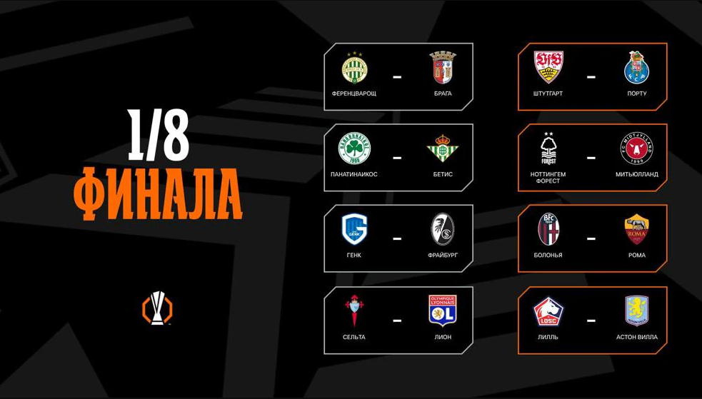 Итоги жеребьевки 1/8 финала Лиги Европы сезона 2025/2026